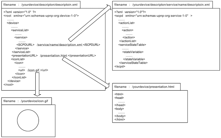 At first, you have to make some description files of your devices and the services when you want to create your UPnP™ device..